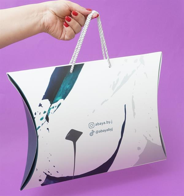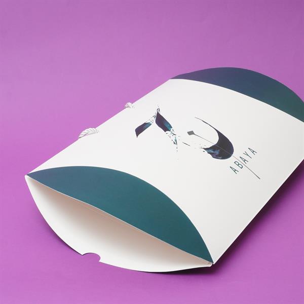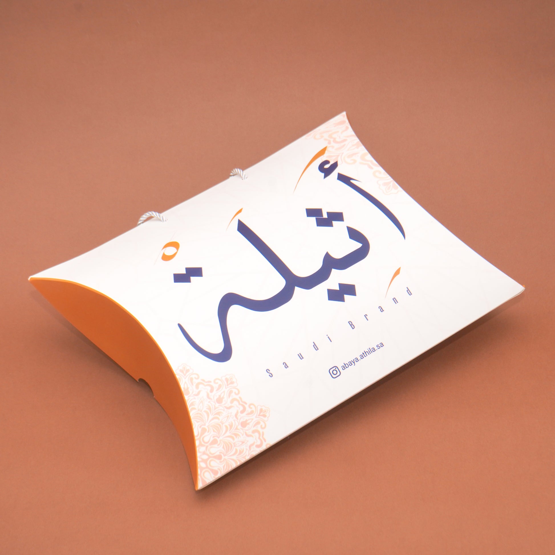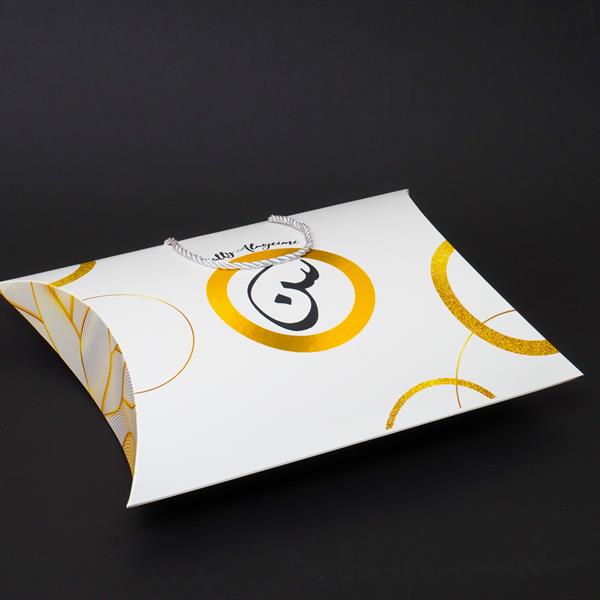 علب ورقيه فاخرة على شكل وسادة مع حامل، تصميم مميز وأنيق يناسبك إن كنت تبحث عن تغليف العبايات أو الأشمغة أو الملابس أو الخمار أو الهدايا صغيرة الحجم إلى متوسطة.