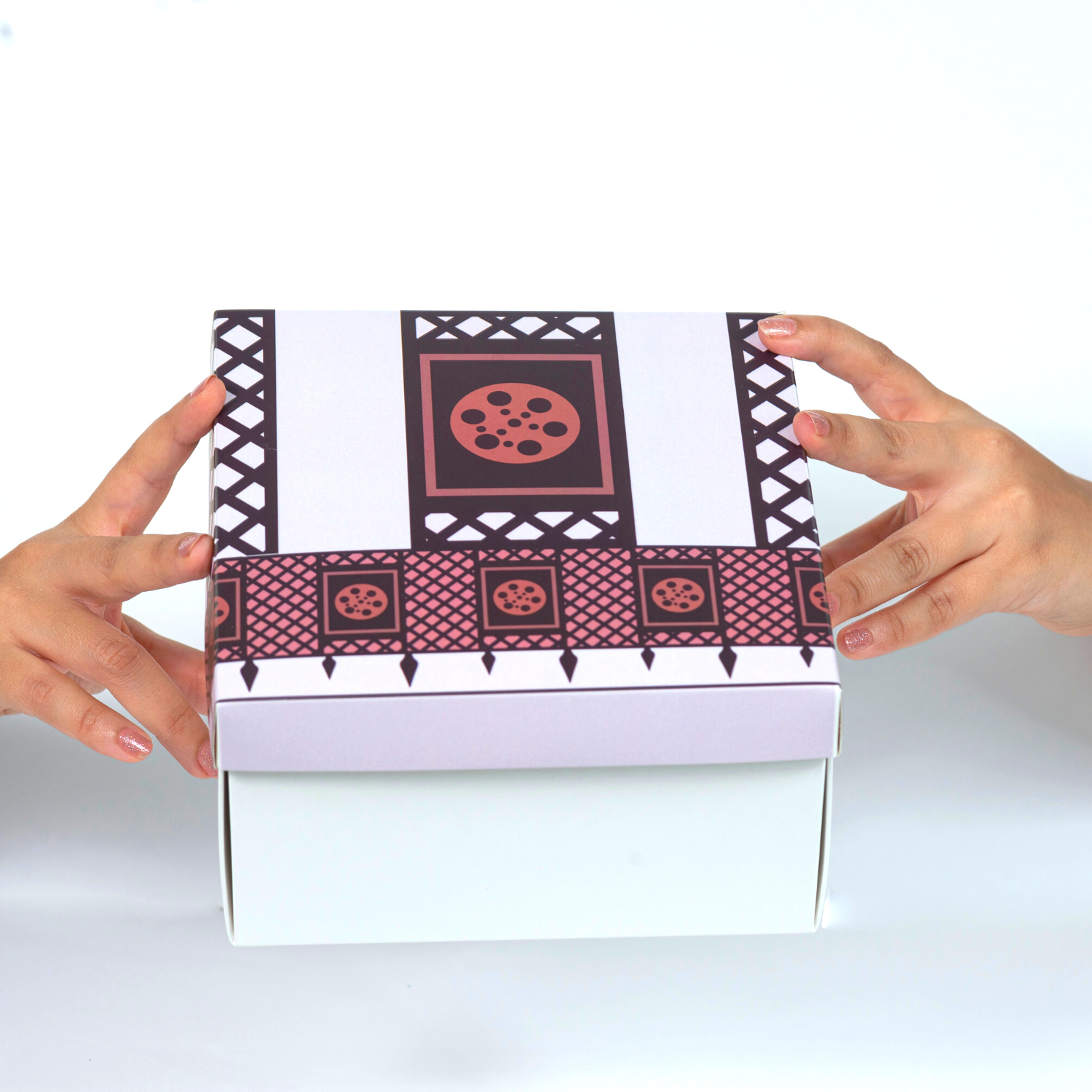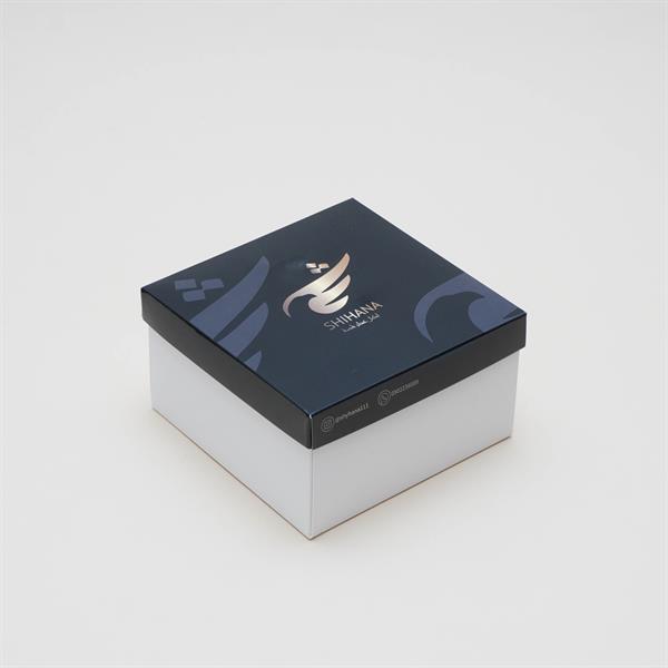 علب ورقية فاخرة بتصميم مربع الشكل يتكون الصندوق من قاعدة وغطاء.