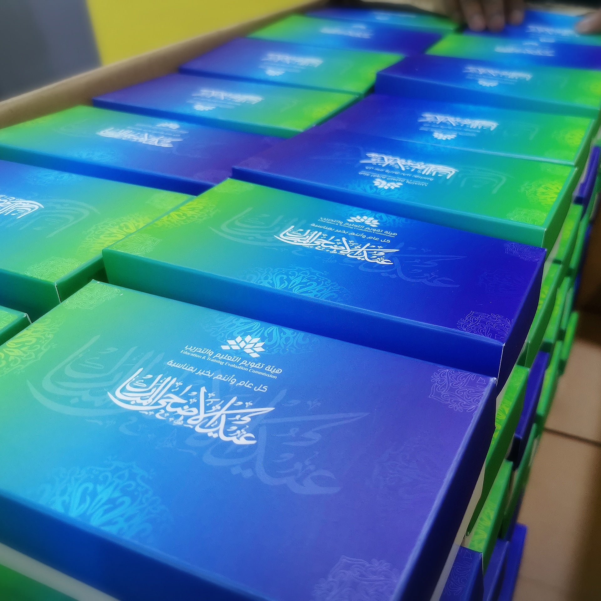 - صندوق من قطعتين مطبوع على كامل الغطاء هويتك/تصميمك بجودة عالية مع طبقة سلوفان لامع او مطفي