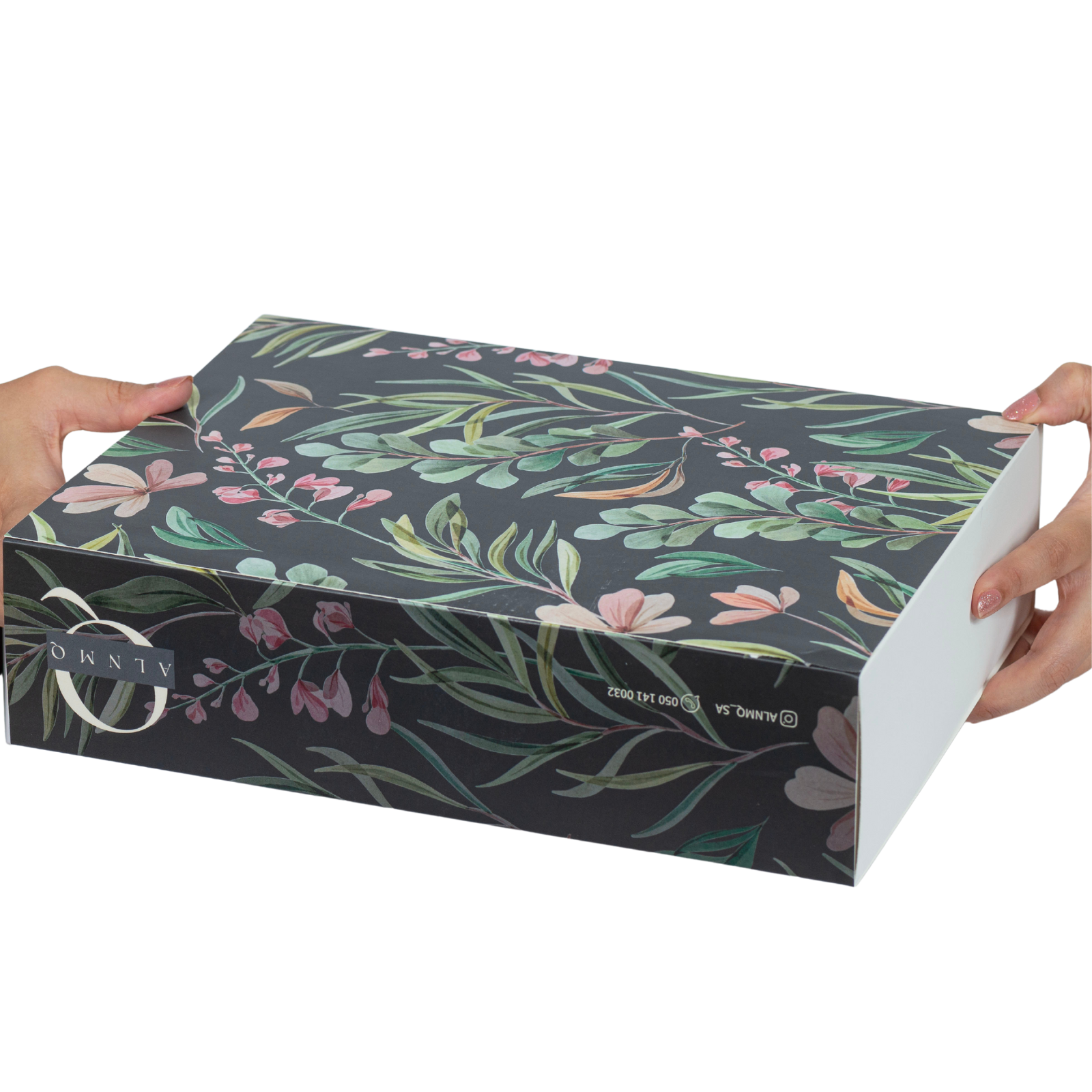 - صندوق سحب من قطعتين مطبوع على كامل الغطاء هويتك/تصميمك بجودة عالية مع طبقة سلوفان لامع او مطفي